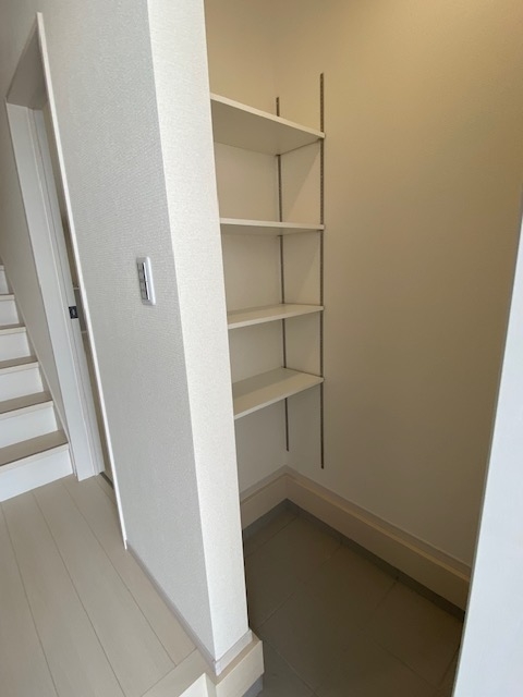 玄関左側には大型のシューズボックスが、右側にはウオークインシューズクローゼットが設置されています。