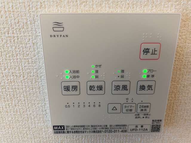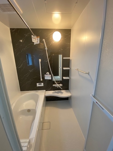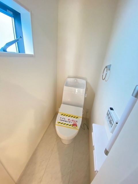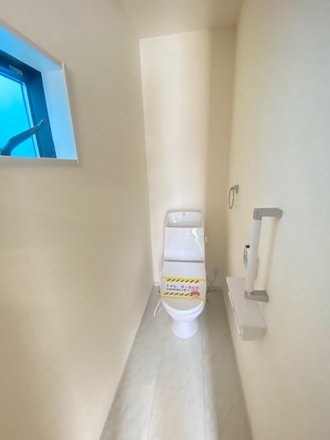 温水洗浄便座と2連の紙巻き器、手すりが標準装備されています。