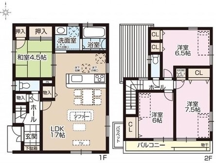2階には6帖の洋室、6.5帖、7.5帖の洋室とトイレ、バルコニーがあります。