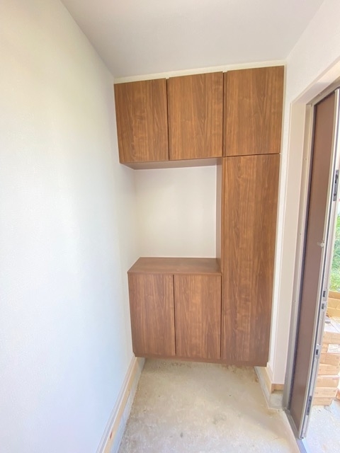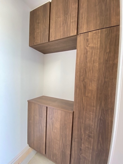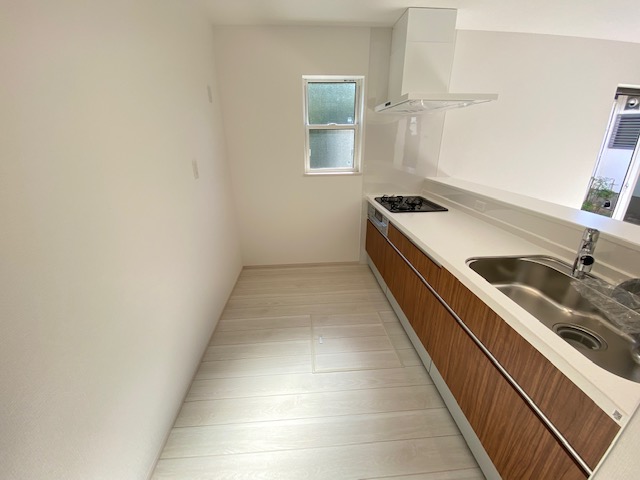 キッチン後ろ側、食器棚や冷蔵庫を設置するスペースもしっかりと確保されています。