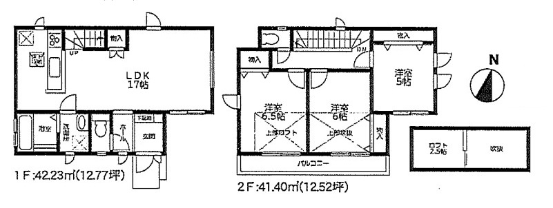 2階には5帖、6帖、ロフト付きの6.5帖の各洋室とトイレ、バルコニーがあります。
