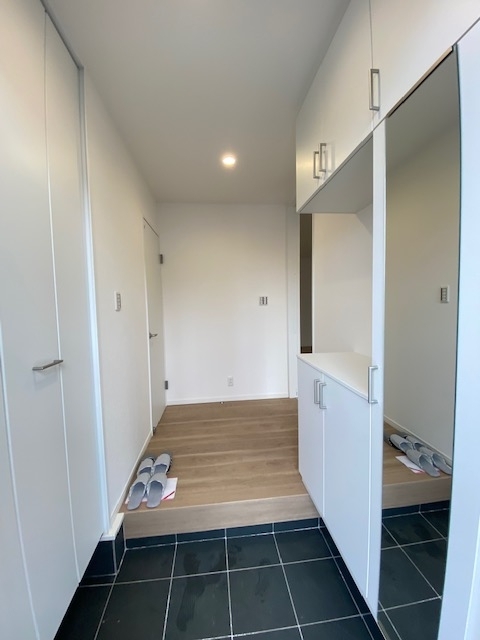 玄関左側には土間収納が、右側には、シューズボックスが設置されています。