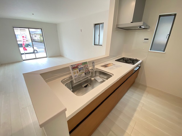 キッチンは、対面式のシンプルなシステムキッチンが採用されています。
