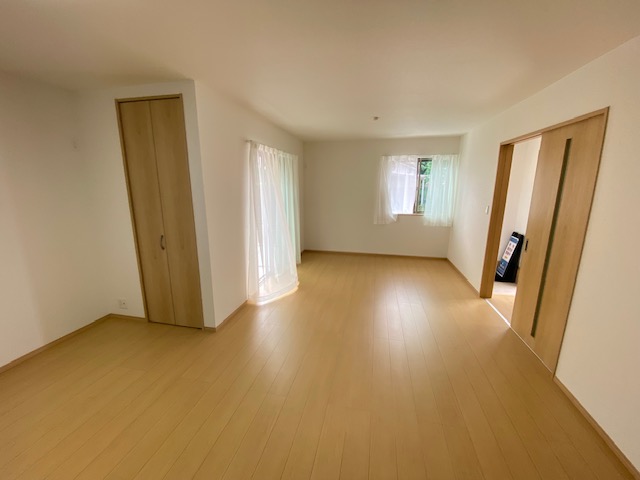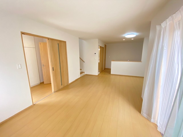 リビングはこちらです。キッチンと合わせて約18.18帖の広さです。