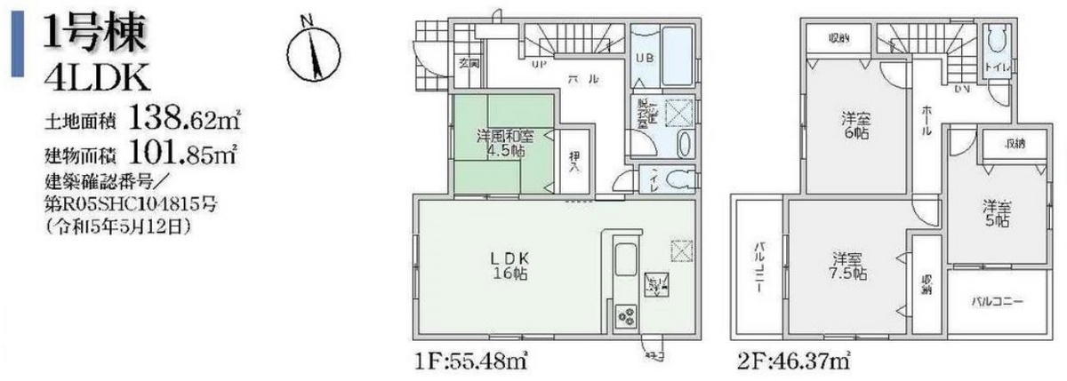 土地面積は138.62㎡(41.93坪)、建物面積は101.85㎡(30.80坪)です。