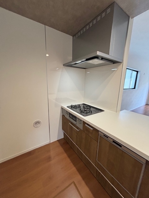 キッチンの加熱機は、ガス仕様。無駄の無いシンプルな設備となっています。