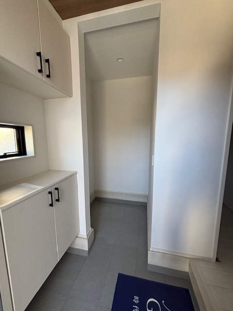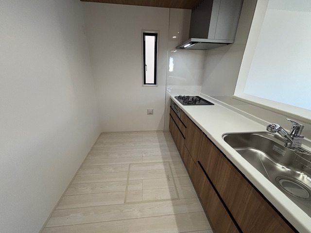 キッチン後ろ側、食器棚や冷蔵庫を設置するスペースもしっかりと確保されています。